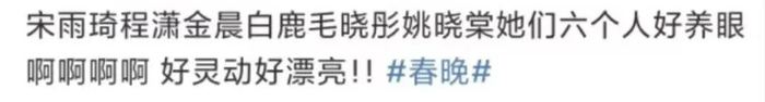 此外,毛晓彤、金晨、白鹿、程潇、姚晓棠、宋雨琦春晚舞台上演唱《春意红包》。