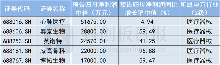 如上图所示,在2024年归母净利润(中值)排名靠前的科创板医药公司中,心脉医疗以5.17亿元的归母净利润位列第一,该公司部分产品的入院家数及终端植入量均增长较快。同时,该公司海外市场开拓取得进展,2024年海外销售收入超1.5亿元。