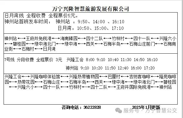 万宁春节期间新增公交线路及接驳车,附路线图→