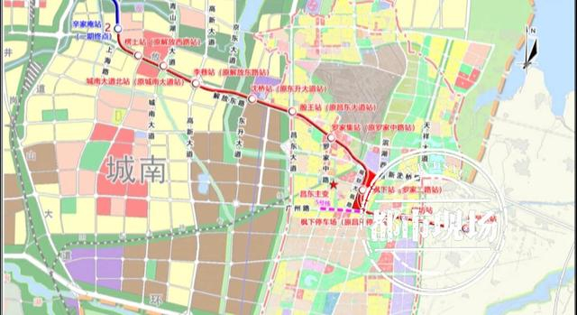 南昌地铁2号线东延工程,起于一期终点站辛家庵站,一路向东延伸至南昌东站,沿着上海南路、解放路、广州路铺设,途经青山湖大道、高新大道、昌东大道路口,共设9座车站,该延长线计划于2025年6月底前开通试运营。
