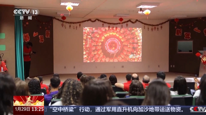 在巴西、刚果(布),当地华人华侨建设者们也在除夕当天齐聚一堂,共赏春晚。
