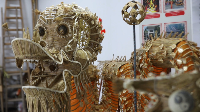 而整条草龙需用数万根稻草编成