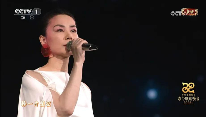 来到2025年的春晚,空灵缥缈的王菲,柔情似水的曲调,娓娓道来的歌词,观众仿佛穿越了时间,乘风浮于云上,笑对人生起起伏伏,闲看天外星辰闪烁。从1998到2025,变的是时间,不变的是真情。