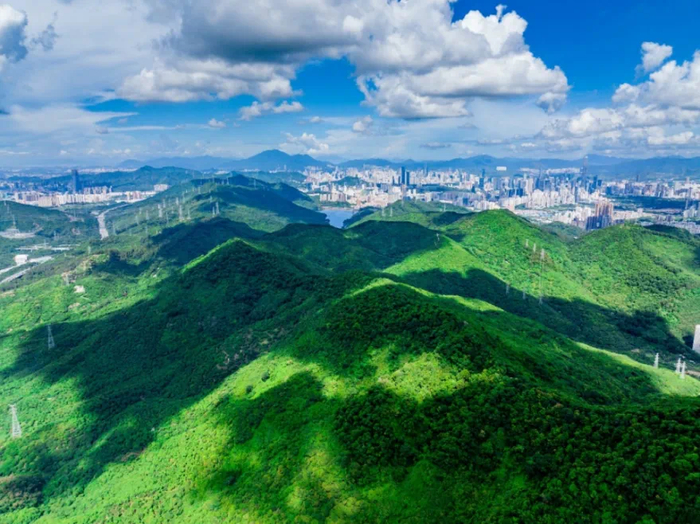 梧桐山顶峰东望:大鹏湾、盐田港、沙头角与中国香港的船湾郊野公园尽收眼底。图源:梧桐山管理处