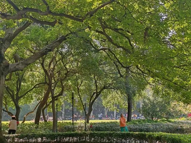 从步道里出来,对面就是中山公园万航渡路一侧。拆掉围墙以后,中山公园的“华东地区第一悬铃木”“铜顶”等多处景点一览无遗地呈现在市民眼前。尤其是在原来二号门和三号门处打造的华阳广场和梧桐广场,更是成了市民游客休憩的好去处。逛累了,可以去万航渡路上的网红咖啡店坐坐,边喝咖啡、边赏景,真是惬意啊。