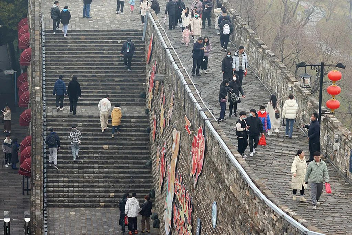 正月十六,“爬城头、踏太平,走百病”。爬城头源自吴地元宵节“走三桥”旧俗。明代,朱元璋定都南京后,征调各地工匠百姓进京建设都城,迁入的周边人口带来“走三桥”习俗。因城内走桥不便,走桥逐渐转换为登城头,时间也改为正月十六的白天。“正月十六爬城头”延续至今,成为具有南京特色的年俗。