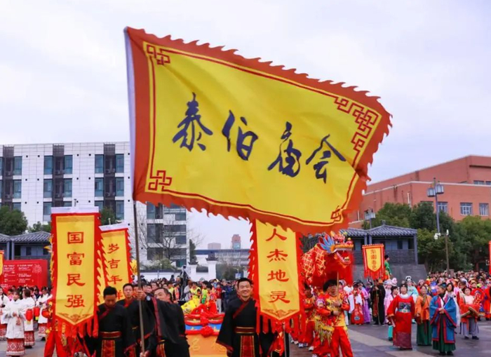 “正月初九拜泰伯,稻谷多收一二百!”泰伯即吴太伯。每年正月初九泰伯生日,设有梅里泰伯庙会。这是无锡一年中的第一个庙会,城乡百姓到此朝拜,盛况空前,历年不衰。我国申报的“春节——中国人庆祝传统新年的社会实践”项目成功入选《人类非物质文化遗产代表作名录》,其中包括无锡泰伯庙会。2025年的泰伯庙会活动更加精彩,新增国际友人队、汉服队等特色巡游队伍,庙会现场还有传统市集、灯会、水上表演、打铁花、灯光秀、水幕秀等项目,让各地游客沉浸式感受泰伯庙会独特的民俗文化。