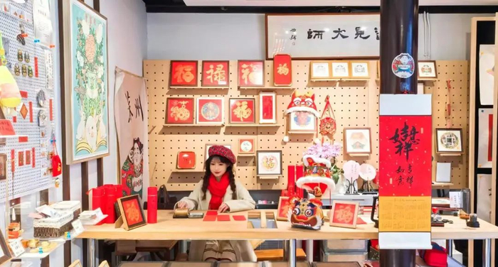 苏州有句老话叫“无画不年”,桃花坞木版年画便是当地不可或缺的年俗元素。桃花坞木版年画因集聚于苏州桃花坞大街区域,故得此名,至今已有400多年历史。每逢春节,不少苏州市民都会在家张贴色彩绚丽的年画,祈福新年家宅平安和气、幸福美满,“和”“福”“寿”是大家常选择的年画主题。如今,桃花坞年画还与时俱进推出了各类文创产品,更加鲜活地进入人民生活,将节日氛围感“拉满”。