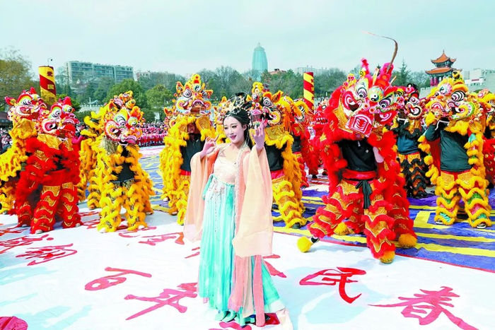 1月29日,曲靖市麒麟区“千人舞麒麟”活动在南城门广场举行。曲艺、舞蹈、器乐、花车路演等节目轮番上演,为市民送上一场精彩纷呈的新春民俗盛宴。张雯李丽刘武俊摄执文艺之笔 绘七彩盛景