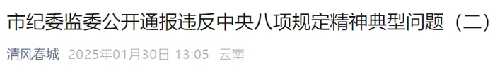 昆明市纪委监委公开通报违反中央八项规定精神典型问题