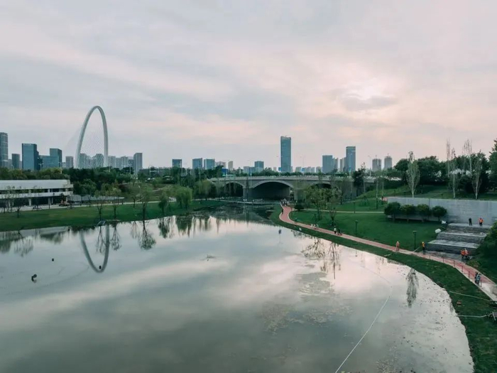 中亚公园毗邻峰会会址,位于西安浐灞国际港会展一路东南侧绿地,北邻欧亚大道,西邻灞河东路,南至东会展路,紧邻西安国际会展中心,全长约1.6公里,宽约400米,占地面积约800亩。