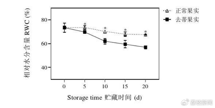 另一方面,留着砂糖橘的果蒂,可以在一定程度上提高砂糖橘的新鲜度。在贮藏过程中,由于气孔呼吸,砂糖橘容易发生失水、重量减轻、果皮质地变化,甚至是浮皮的现象,而这些变化主要与水分和果胶组分密切相关。作为砂糖橘的重要部位,果蒂对砂糖橘的水分和营养物质的保存起着相当关键的作用。西南大学的一项研究证明,整个果实果蒂部位的呼吸和蒸腾作用最强,果蒂是果实水分以及营养物质与外界交换的主要“关口”。研究发现,柑橘果实在贮藏过程中果皮的相对水分含量显著下降,脱蒂处理会加剧柑橘果皮水分的散失,在整个贮藏阶段,去蒂果皮的相对水分含量都显著低于正常果实。也就是说,保留果蒂,可以使砂糖橘在到达消费者手里时外观更水润,不蔫巴。