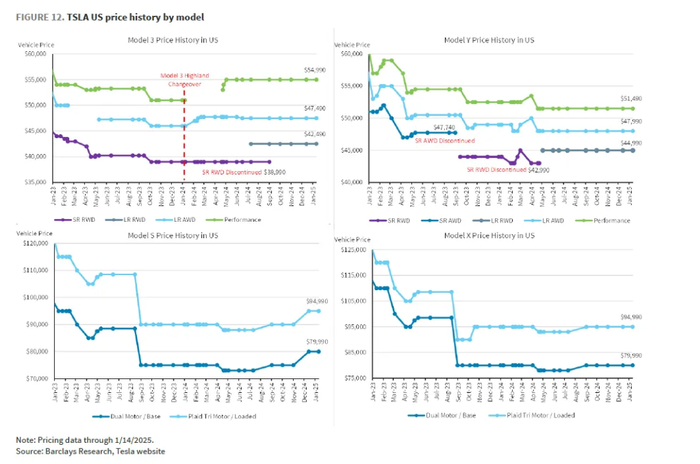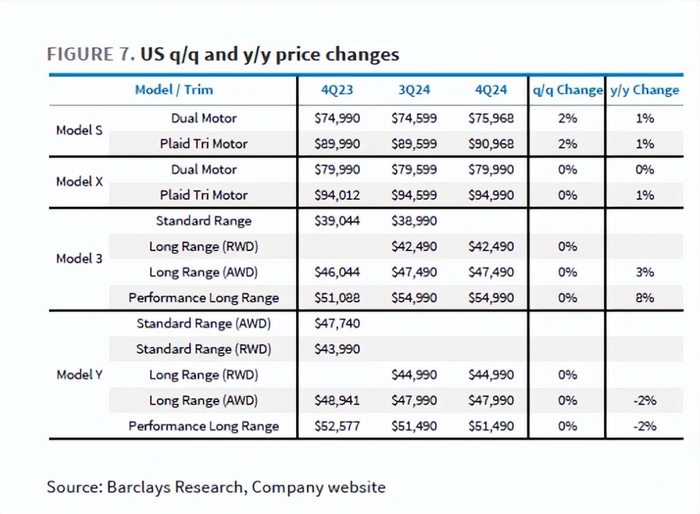 ① 对于现有车型的价格调整:在中美两个最大市场(Q4占总交付量72%),特斯拉并没有在四季度进行整体降价