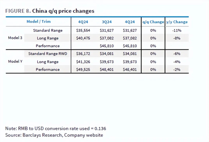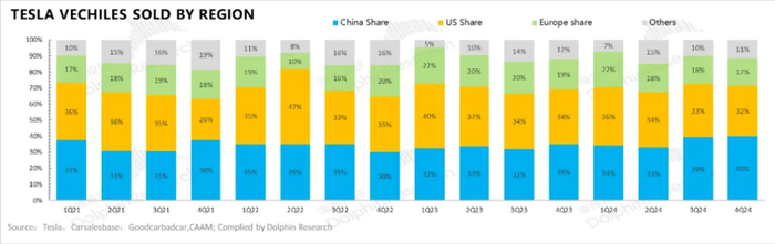 b. 中国:同样在中国,特斯拉四季度也未对主力车型Model 3/Y进行降价。