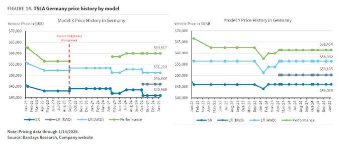 c. 欧洲:对Model 3略有降价(由于欧盟仅对特斯拉加征关税9%,好于预期),但推出更高价格的长续航和高性能版作为对冲,对Model Y没有降价。