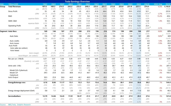 b. 汽车业务毛利率:虽然2025年是新品年,但可能会被低价Model 2.5以及IRA补贴的削减损伤毛利率: