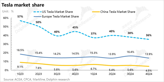 而海豚君认为2025年市场对于特斯拉销量预期较低,以及销量的不确定性主要来自两方面: