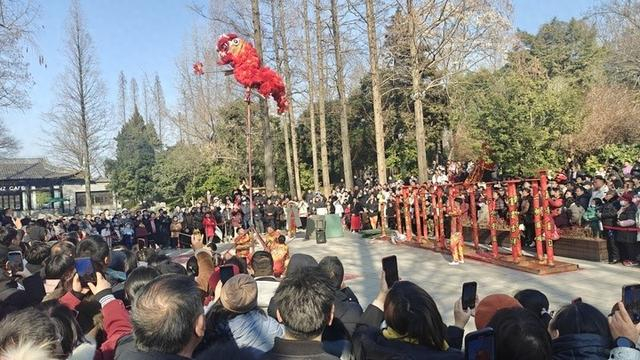 瘦西湖舞龙舞狮表演 瘦西湖风景区文创演艺部副部长李丽介绍,春节期间景区非遗氛围浓郁,在熙春台后广场,游客可参加“蛇年吉祥——新年有大‘集’”活动,糖画、面塑、画扇、绒花、花灯等具有扬州地方特色的非遗工艺都聚集在这里;在熙春台前广场,游客可欣赏古筝曲《金蛇狂舞》、木偶《茉莉花》、清曲《板桥道情》等非遗表演;五亭桥北广场至桂花厅,传统的舞龙舞狮、踩街等非遗表演项目,为大家呈现一幅百戏纷呈、花样繁多的热闹新春画面。