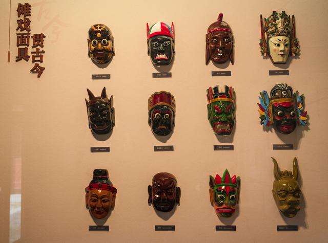 2024年10月12日,河北省保定淮军公所,即中国古戏楼博物馆展出的傩戏面具。