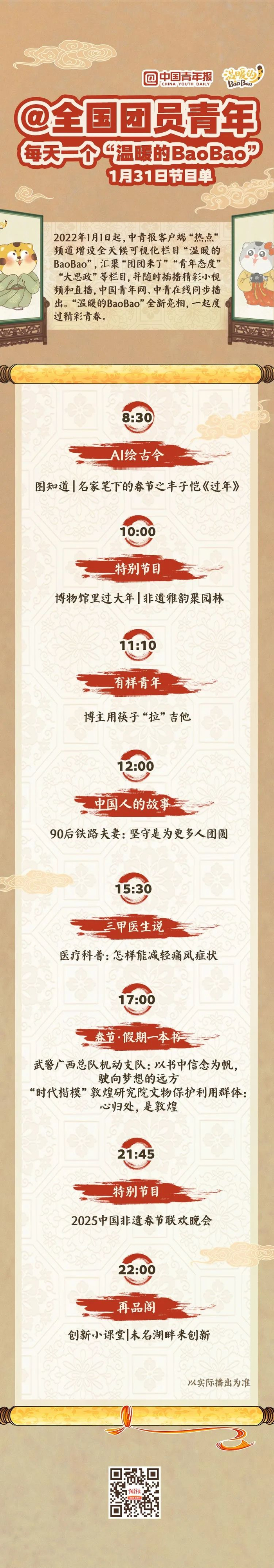 17时,一起来读书,在“春节·假期一本书”栏目,听“时代楷模”敦煌研究院文物保护利用群体分享“心归处,是敦煌”。我们还将一起欣赏2025中国非遗春节联欢晚会,敬请期待21:45的节目。