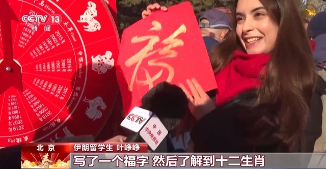 伊朗留学生 叶峥峥:我今天体验到了一些非遗活动,写了一个福字,了解到十二生肖,通过这样的活动来了解中国的文化,是非常有意义的。