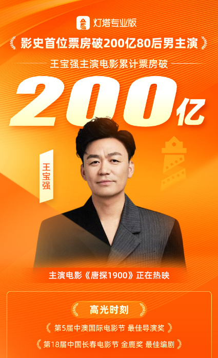 就在昨天,《唐探1900》也助力领衔主演王宝强主演电影票房突破200亿,成为影史首位票房破200亿80后男主演。