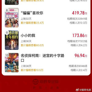 《哪吒之魔童闹海》《唐探1900》《封神第二部:战火西岐》分列春节档票房榜前三位。