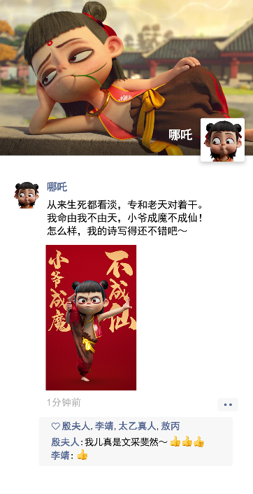 老熟人小哪吒自然是绝对的主角,一出场,一段数来宝,一段踢毽子,就把人物逻辑给捡回来了。这藕饼CP也有多个名场面,截图下来都能当壁纸那种,磕CP的放心冲。