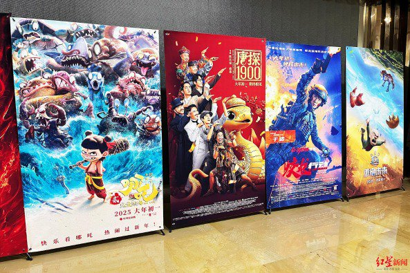 电影《哪吒之魔童闹海》、《唐探1900》和《封神第二部:战火西岐》分列春节档票房榜前三位。