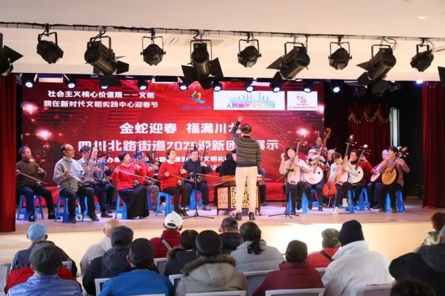 四川北路街道新时代文明实践分中心、四川北路街道社区文化活动中心举行了“金蛇迎春、福满川北——2025年社区文体团队迎春展示活动”。各文体团队队员、社区文艺骨干等齐聚一堂,现场洋溢着浓浓的节日氛围。
