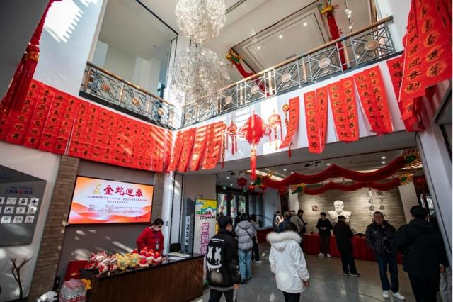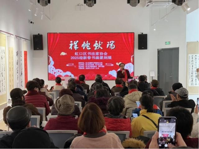 “祥蛇献瑞”虹口区书法家协会迎新春书画篆刻展在和平书院开幕。本次展览由虹口区精神文明建设办公室指导,虹口区文旅局、虹口区文联主办,虹口区书法家协会、和平书院承办,共展出作品100余件,活动现场书法家们挥毫泼墨,为前来观展的市民朋友们现场创作了一幅幅寓意吉祥的春联以及饱含祝福的福字作品。