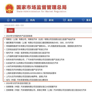 2025年1月24日,国家市场监督管理总局的官网显示,多家车企在农历新年假期前集中备案召回计划。