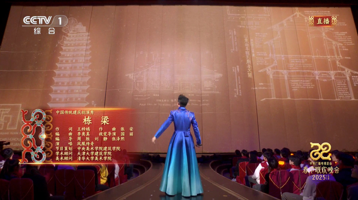 中央广播电视总台《2025年春节联欢晚会》上,以榫卯结构、祈年殿和北京中轴线等为灵感的中国传统建筑创演秀《栋梁》成为今年的一大亮点。该节目视觉设计以梁思成先生绘制的古建筑珍贵手稿为基础,制作成三维立体建筑模型。聚焦“中国建筑”的《栋梁》,是总台春晚继“中国色彩”“中国纹样”之后,再次对中华优秀传统文化作出的创新性表达。节目将运用总台虚实融合超高清制作系统,采用“XR+数字孪生+VP”融合拍摄,通过打造无限延展的虚拟舞台空间,展现中国古建的文化内涵。