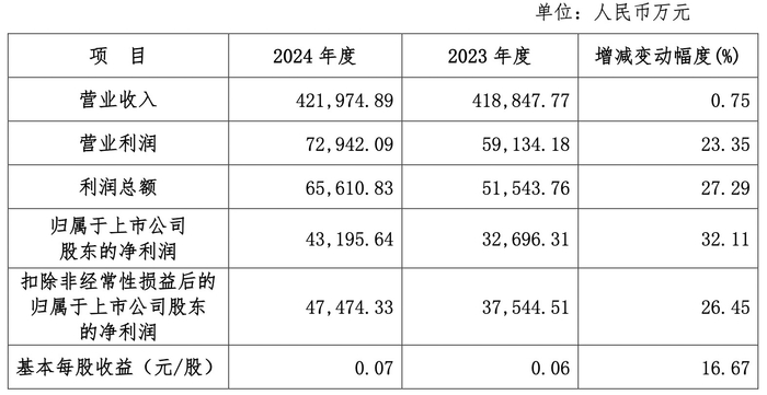 1月25日,国海证券(000750)发布2024年度业绩快报,公司当年营业收入为42.2亿元,较2023年度的41.88亿元增长0.75%;营业利润达到7.29亿元,同比增加23.35%;利润总额为6.56亿元,较2023年度的5.15亿元增长27.29%;归母净利润为4.32亿元,较上年增加32.11%;扣除非经常性损益后的归母净利润为4.75亿元,较2023年度增长26.45%。基本每股收益为0.07元,较上年的0.06元增长16.67%。
