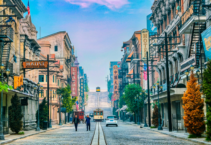 花了9个月1:1复刻的1900年旧金山,逼真程度令人惊叹。唐人街、欧洲街、中国大戏院等标志性建筑,让你一秒穿越到美国。