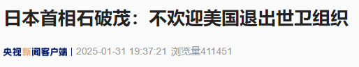石破茂说:“美国此前在全球卫生健康领域发挥了重要作用。对于日本而言,不欢迎美国削弱这一作用的做法。”