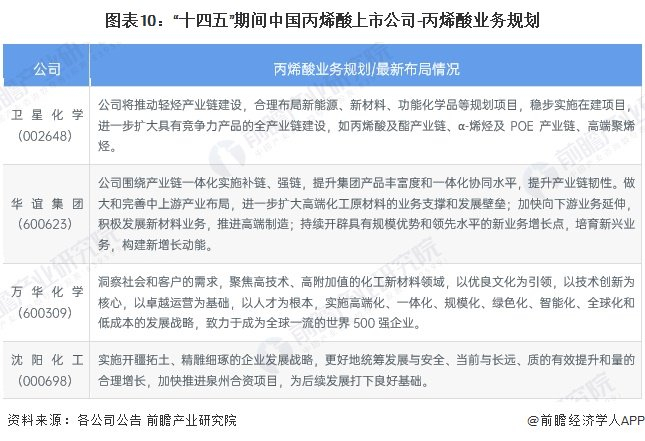 5、丙烯酸上市企业丙烯酸业务规划对比