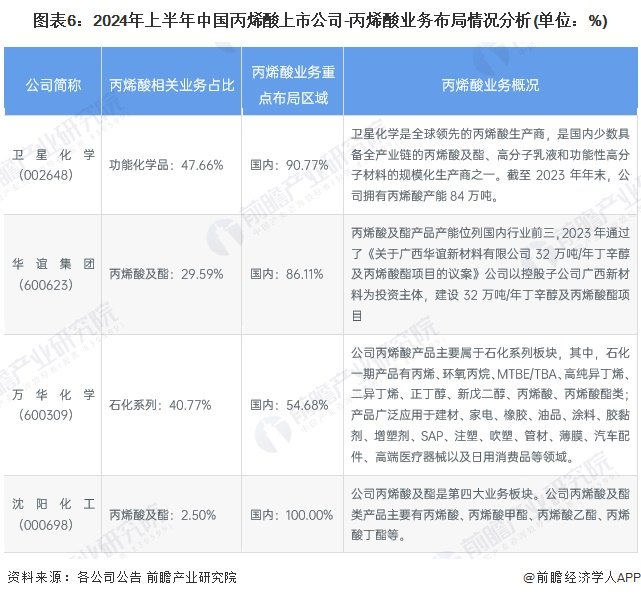 【最全】2024年丙烯酸行业上市公司全方位对比(附业务布局汇总、业绩对比、业务规划等)