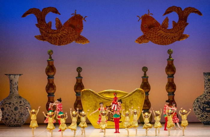 △2025年1月29日晚,中国中央芭蕾舞团演员和美国小朋友在美国首都华盛顿肯尼迪表演艺术中心演出贺岁舞剧《过年》。新华社记者 胡友松 摄