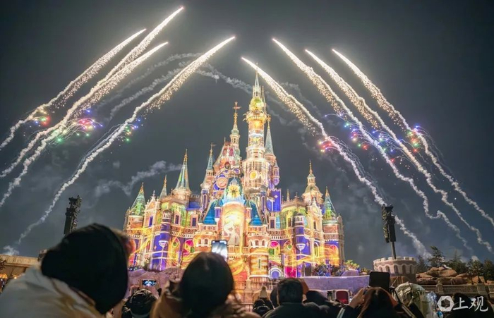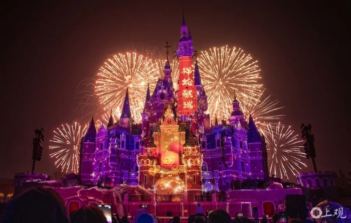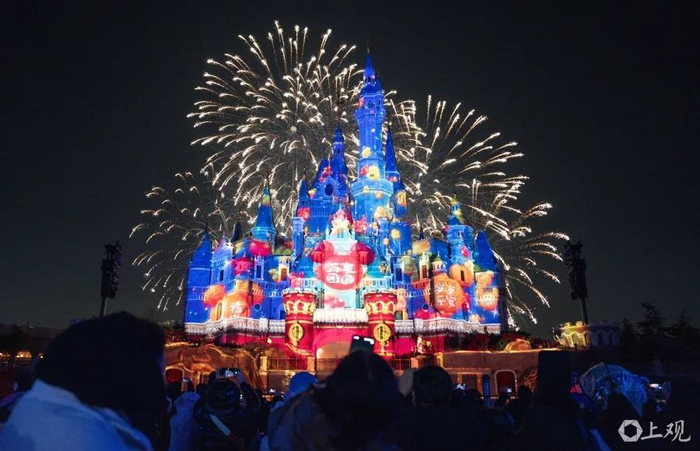 大年初三,上海迪士尼乐园为游客定制了限定版新春庆典烟花。