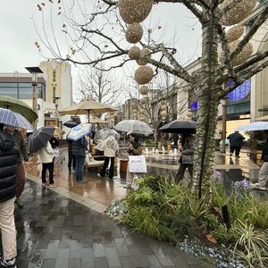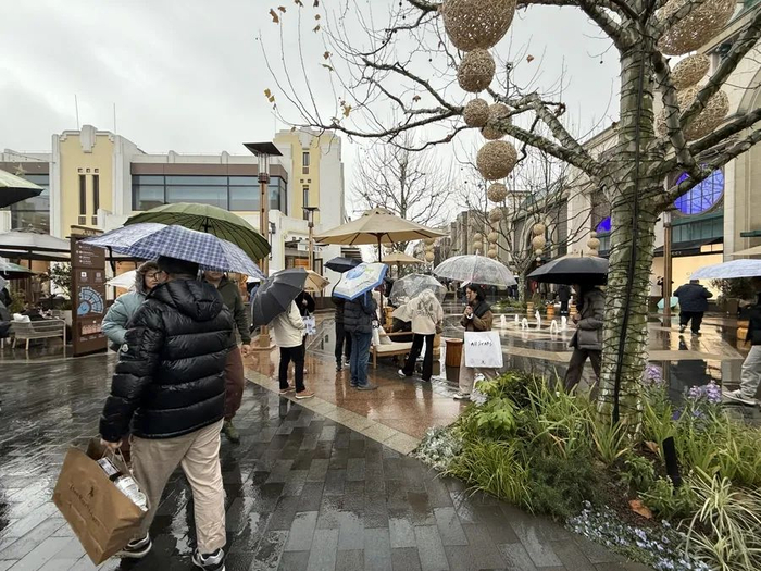 比斯特上海购物村,雨天不减市民游客消费热情。沈思怡 摄