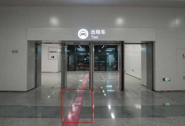 沿着地上醒目的标识步行至出租汽车上客点。
