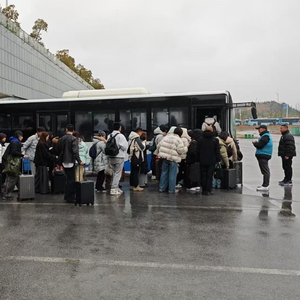“刚才一出站,看到大厅全是人,外面又下着雨,正当不知所措时,工作人员带我们一家三口还有其他游客一起到公交车上车点,没想到这么多台公交车等着,大家都特别惊讶和感动!”1月31日15时,在高铁北站南广场公交车上车点,由于多趟列车集中到达,大量旅客集中出站,工作人员立即启动应急响应,引导旅客们乘坐早已停靠在站台的公交车,不到五分钟,便坐上公交车离开了高铁站。