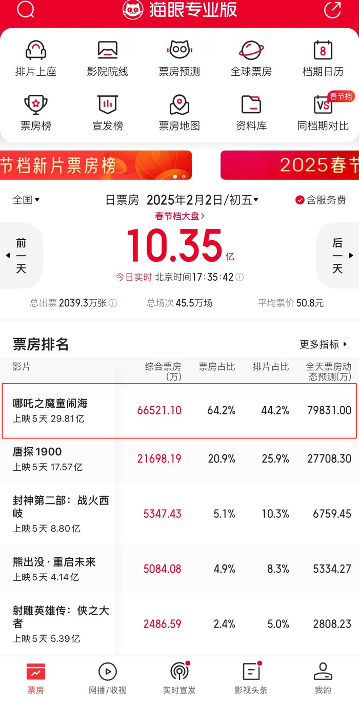 今年,被寄予厚望的春节档,《哪吒之魔童闹海》上映10天票房直冲30亿,灯塔预测其有望突破60亿,再次让电影市场重燃希望。