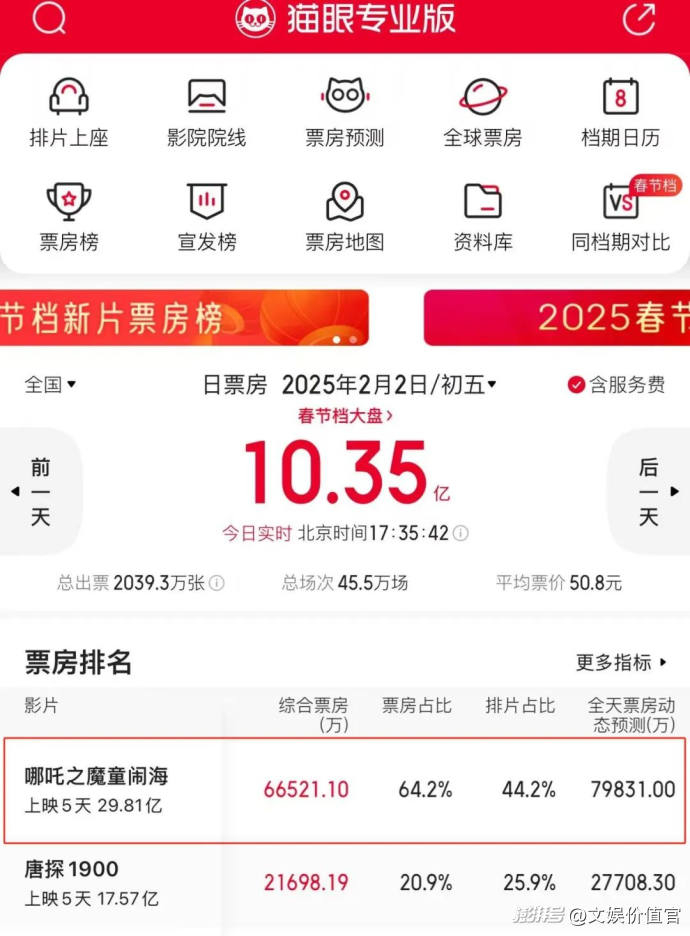 今年,被寄予厚望的春节档,《哪吒之魔童闹海》上映10天票房直冲30亿,灯塔预测其有望突破60亿,再次让电影市场重燃希望。