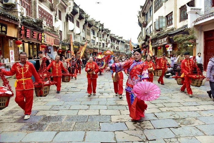 黔东南州镇远县新春文旅活动:龙神嫁妹婚俗巡游重现《儒林外史》场景