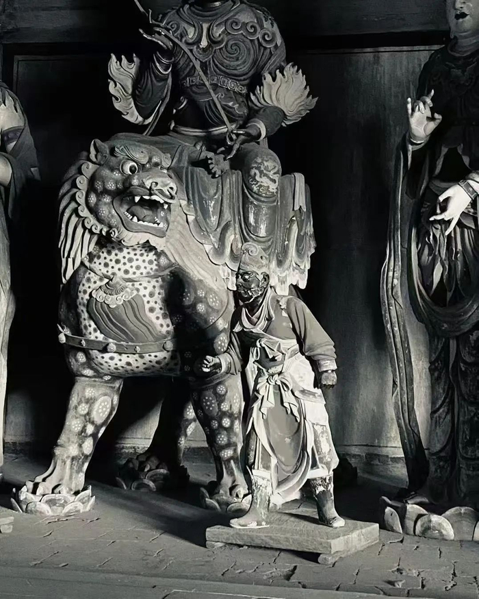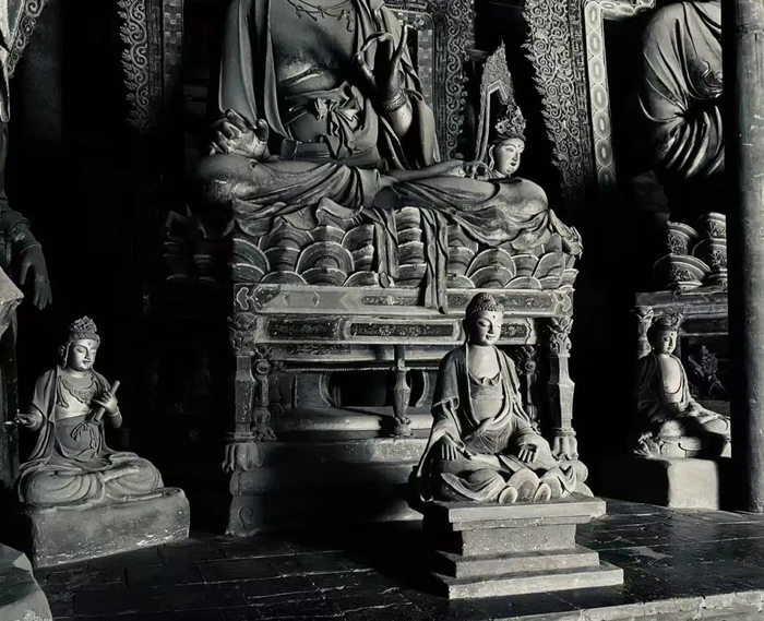 东大殿里的唐代造像,被后世涂绘得略显艳俗,但若将色彩调制黑白,褪去后世修复的滤镜,大唐的气韵便扑面而来。