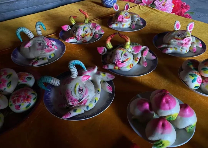 文庙里供奉的丑萌丑萌的“猪牛羊”是用代县的(非遗)面塑技艺制作的三牲祭品