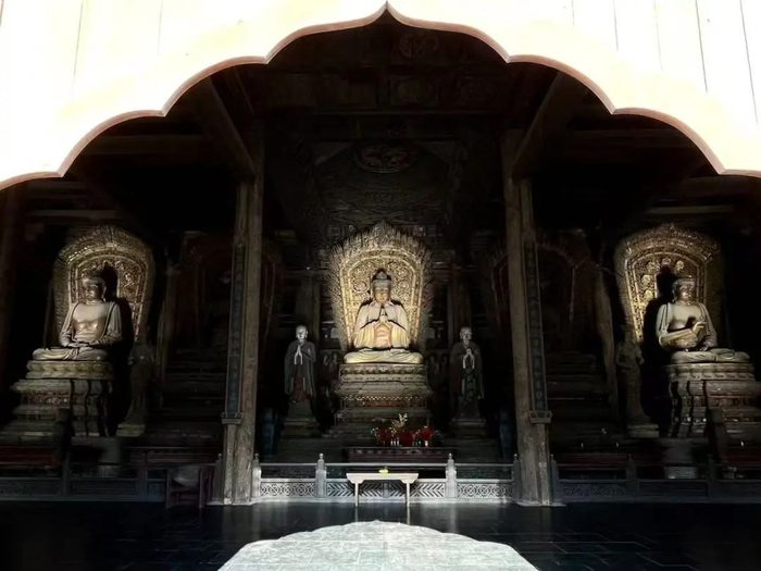 崇福寺是我们在策划第三期晋北团行程时被反复取舍的一个目的地,“舍”是因为路线有点不顺、略微绕远,而最终保留下的理由也很简单——它实在太宝藏了,仰观它的金代五绝:花窗、匾额、脊饰、壁画、造像,无一不向我们炫技着千百年前工匠们的造诣是何等的令人叹为观止!