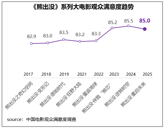《熊出没·重启未来》为系列第三部超85.0分影片